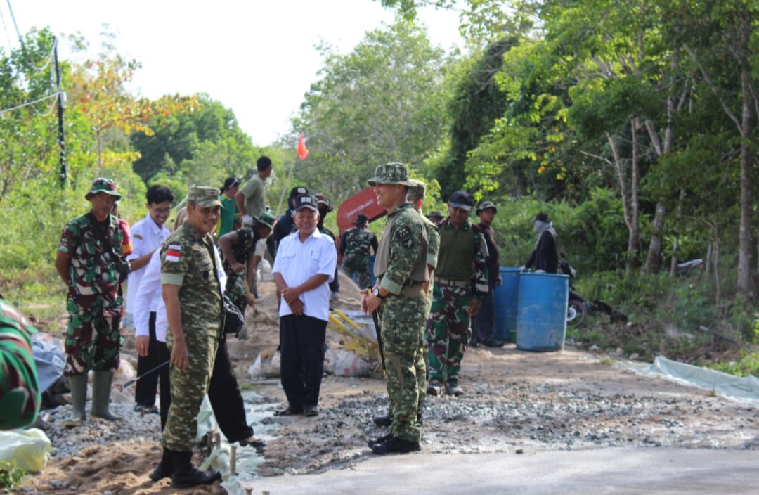 Didampingi Kasiter Kasrem 121/Abw Kolonel Inf Neggy Kuntagina, Dandim 1205/Stg Letkol Inf Zulfikar Akbar Helmi serta unsur Pemerintah Daerah Sintang. Danrem 121/Abw Brigjen TNI Purnomosidi meninjau secara langsung sejumlah sasaran fisik maupun nonfisik program TMMD guna memastikan progres pekerjaan berjalan sesuai rencana dan tepat sasaran.