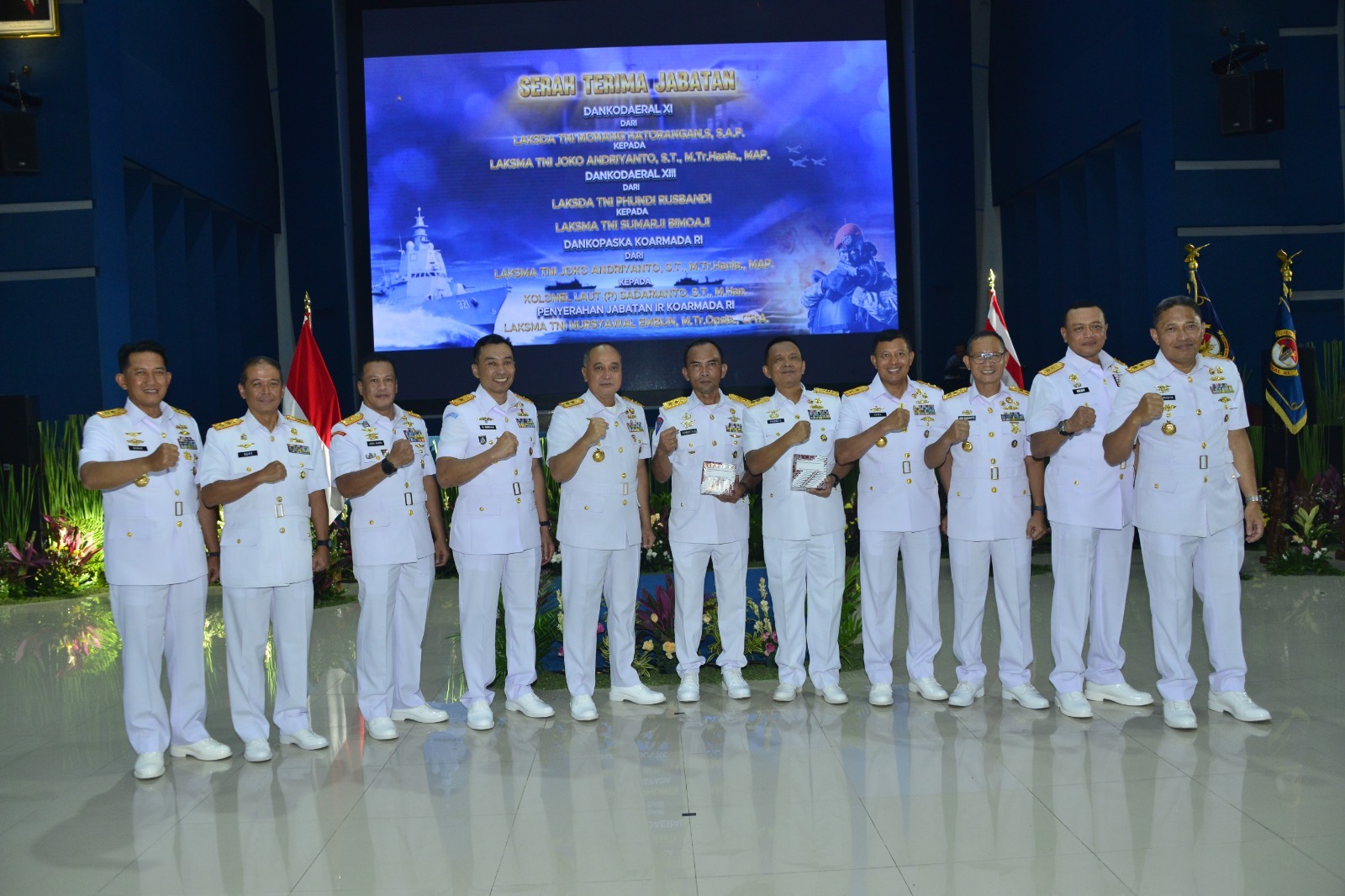 Jakarta — Komandan Komando Daerah TNI Angkatan Laut (Kodaeral) XII, Laksamana Muda TNI Sawa, S.E., M.M., CIQaR., menghadiri upacara Serah Terima Jabatan (Sertijab) Dankodaeral XI, Dankodaeral XIII, Danpuskopaska Koarmada RI, serta penyerahan jabatan Ir Koarmada RI yang dipimpin oleh Panglima Koarmada RI, Laksamana Madya TNI Denih Hendrata, di lingkungan Komando Armada Republik Indonesia yang digelar di Gedung Olahraga O.B. Syaaf, Kamis (26/02/2026.
