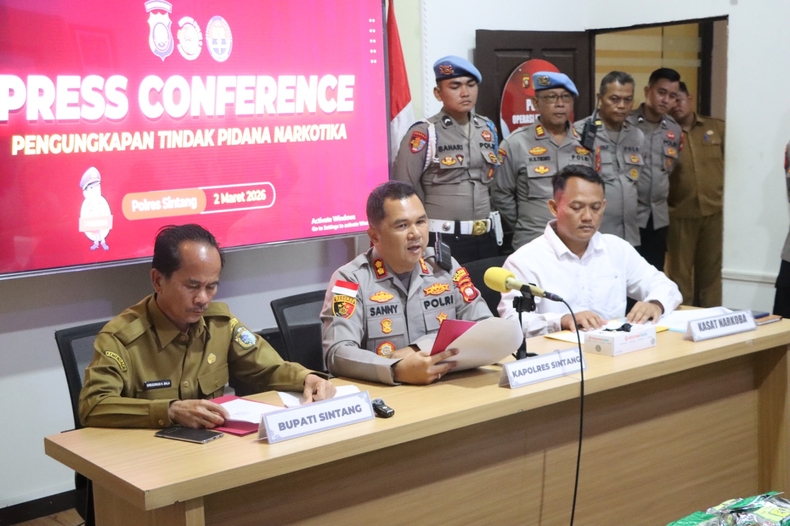 Dalam konferensi pers tersebut Kapolres Sintang AKBP Sanny Handityo memaparkan kronologi pengungkapan kasus yang terjadi pada Minggu, 1 Maret 2026, di Jalan Dara Juanti, Kelurahan Ulak Jaya, Kecamatan Sintang.