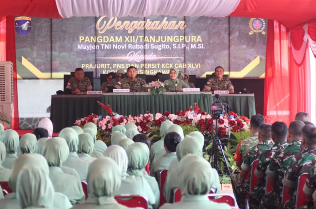 “Pembinaan Teritorial harus terus dioptimalkan. Inilah identitas TNI AD sebagai tentara rakyat, tentara pejuang, dan tentara profesional,” tegas Pangdam di hadapan jajaran Kodim 1202/Singkawang.