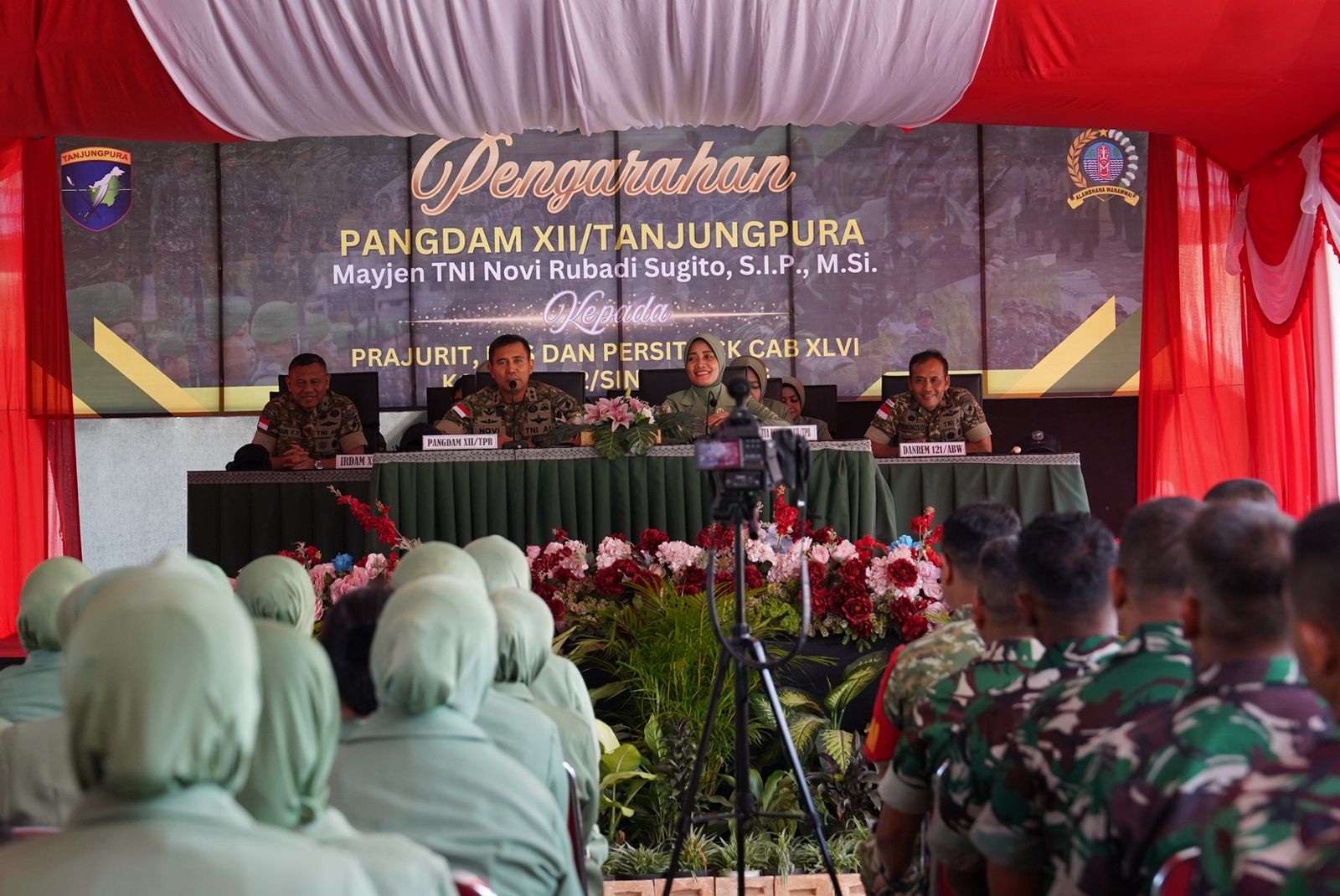 ”Kepada Ibu-ibu Persit, saya berpesan agar senantiasa menjaga kehormatan keluarga. Teruslah setia mendampingi dan mendukung suami dalam menjalankan tugas negara,” ujar Mayjen TNI Novi Rubadi Sugito. (Pendam XII/Tpr)