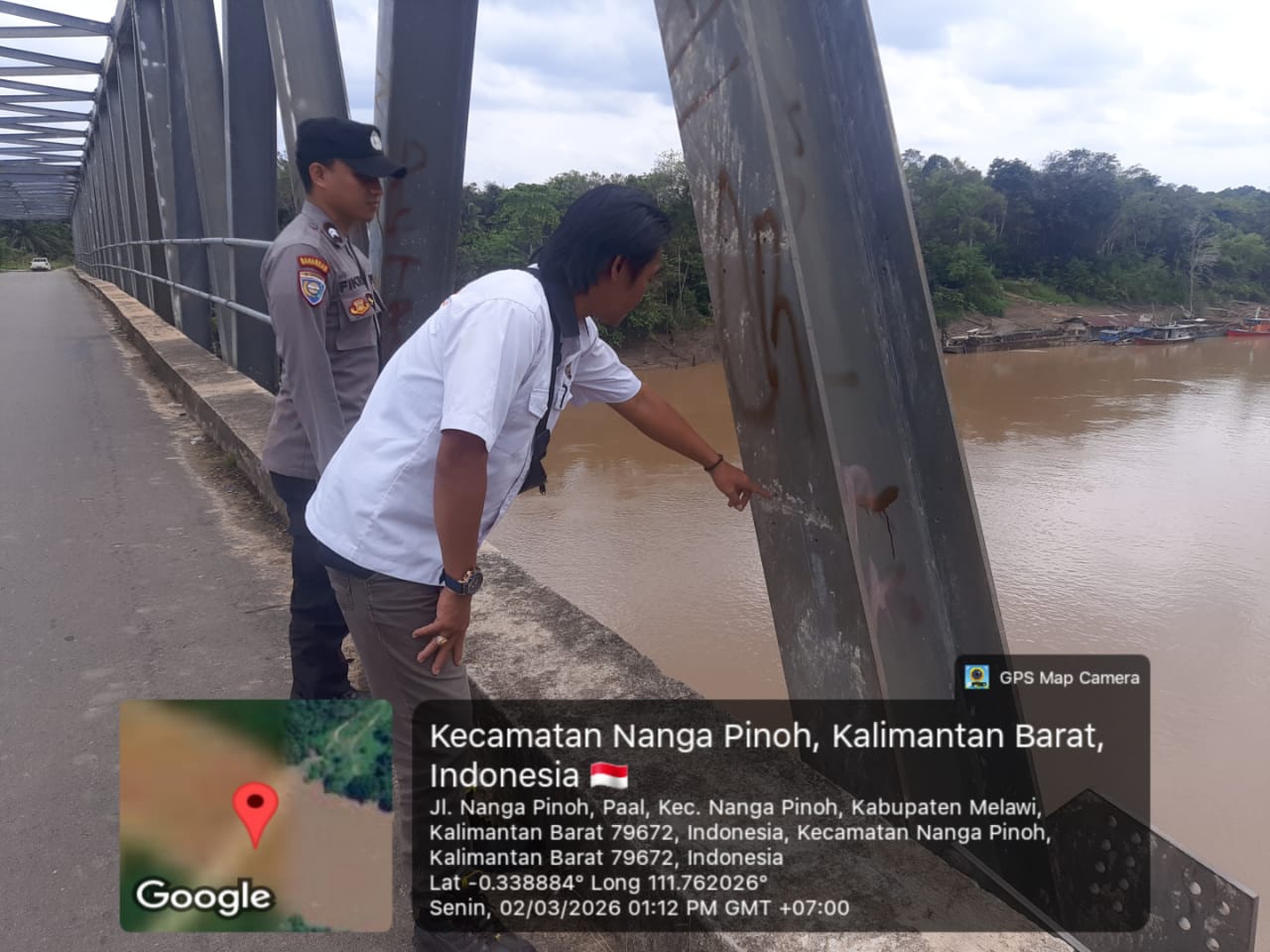 Melawi – Adanya informasi dari masyarakat dan media sosial tentang hilangnya besi pengamanan jembatan Melawi II yang terletak di Desa Pall, Polsek Nanga Pinoh respon cepat mendatangi lokasi dan melakukan pengumpulan bahan keterangan, Senin (2/3/26)