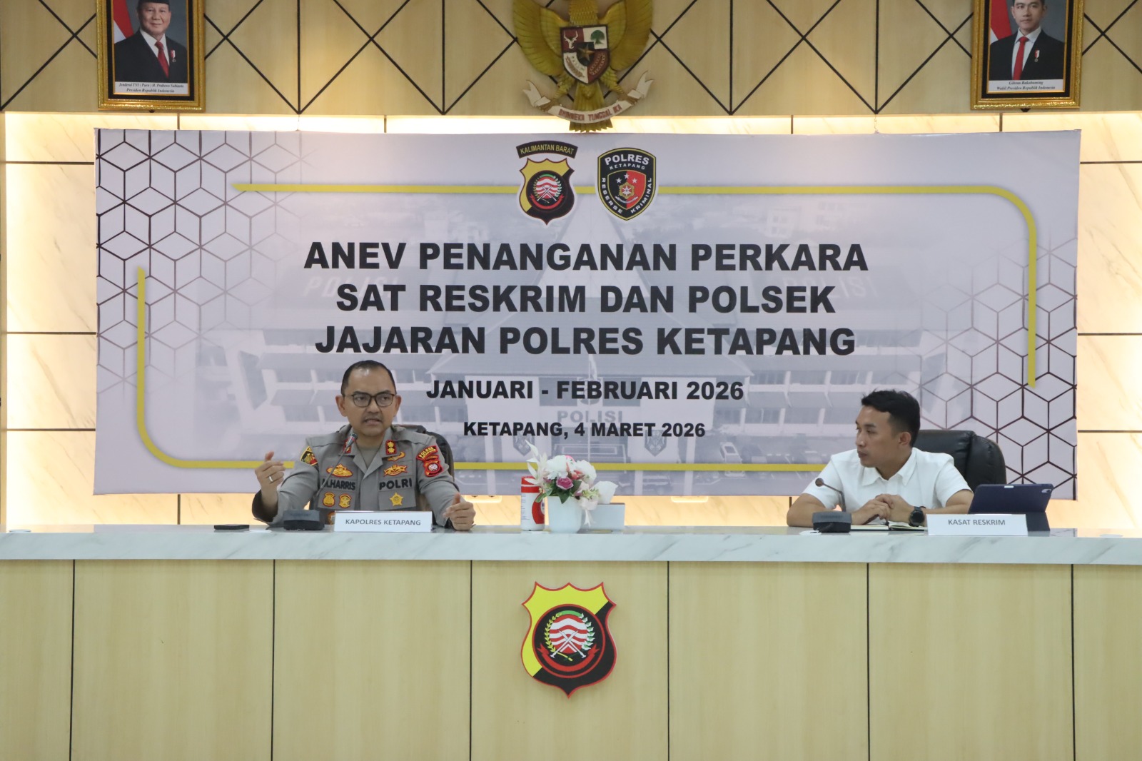 Ketapang – Kapolres Ketapang AKBP Muhammad Harris, S.H., S.I.K., M.I.K., CPHR memimpin langsung pelaksanaan Analisa dan Evaluasi (Anev) penanganan perkara yang dilaksanakan oleh Satuan Reserse Kriminal (Sat Reskrim) dan Polsek jajaran, bertempat di Aula Polres Ketapang, pada (05/03/2026).