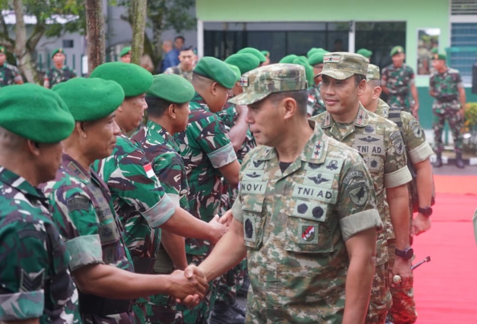 ​Sintang – Semangat prajurit menyelimuti Markas Kodim 1205/Sintang saat menyambut kedatangan Panglima Komando Daerah Militer (Pangdam) XII/Tanjungpura, Mayjen TNI Novi Rubadi Sugito, S.I.P., M.Si., dalam rangkaian kunjungan kerja resminya pada Selasa (10/3/2026).
