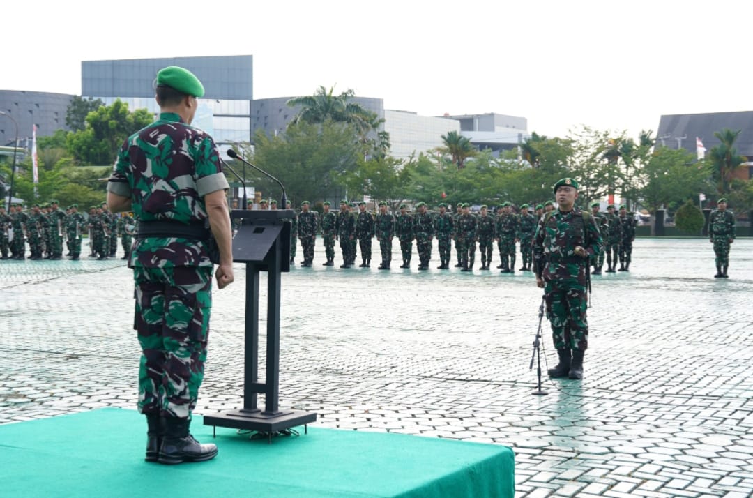 Kubu Raya – Panglima Kodam XII/Tanjungpura, Mayjen TNI Novi Rubadi Sugito, S.I.P., M.M., memimpin upacara penyambutan purna tugas Satgas Percepatan Penanganan Pasca Bencana Alam Yonzipur 6/Satya Digdaya di Lapangan Tidayu, Makodam XII/Tpr, Sabtu (14/3/2026) sore.