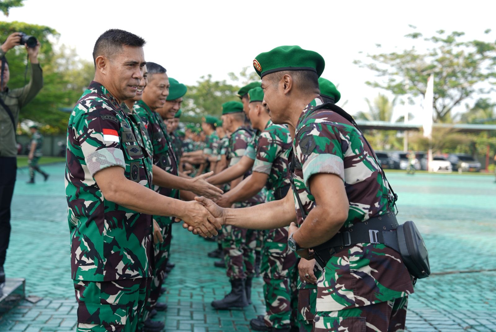 Dalam suasana penuh kehangatan, Pangdam XII/Tpr beserta jajaran pejabat utama menyalami satu per satu prajurit yang berbaris rapi. Kegiatan ini bukan sekadar seremoni, melainkan momentum penting untuk saling memaafkan dan memperkuat tali persaudaraan (spirit de corps) keluarga besar Kodam XII/Tanjungpura.