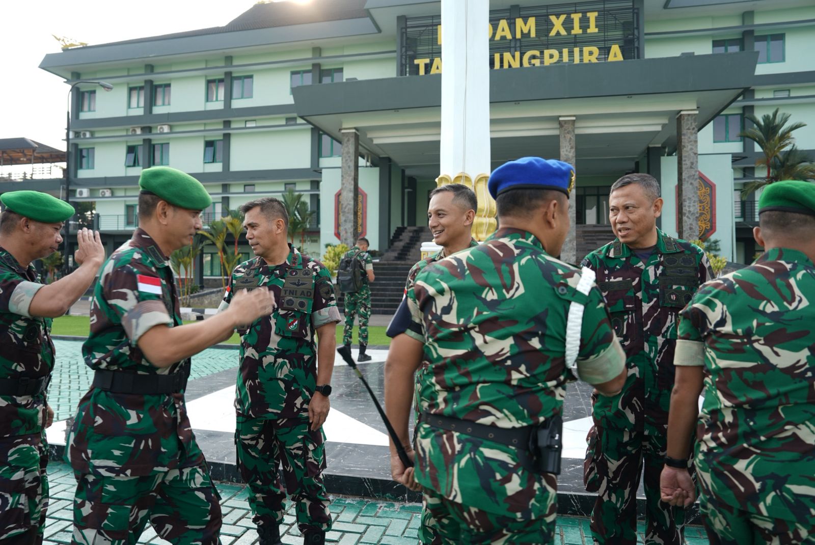 Kegiatan berlangsung di Lapangan Tidayu, Makodam XII/Tpr, Kubu Raya, Rabu (25/3/2026). Acara silaturahmi ini dilaksanakan sesaat setelah apel pengecekan personel. Hal ini dilakukan guna memastikan seluruh anggota telah kembali tepat waktu dan siap menjalankan tugas kembali di kesatuan masing-masing.
