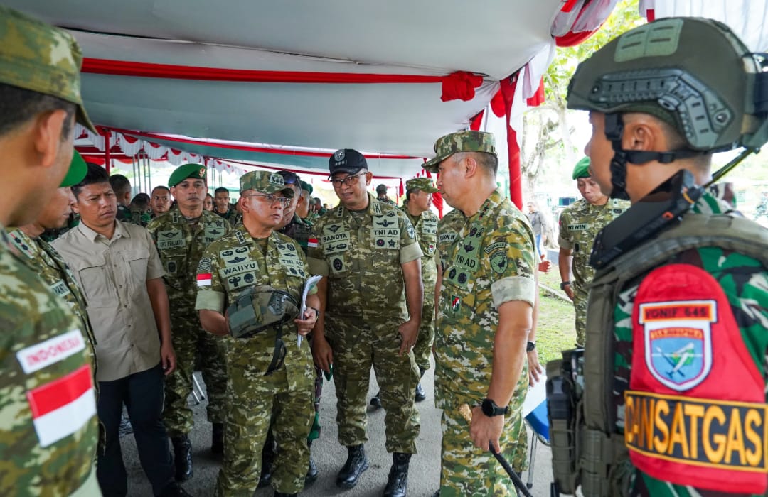 Sambas – Pangdam XII/Tanjungpura, Mayjen TNI Novi Rubadi Sugito, S.I.P., M.Si., memimpin langsung pemeriksaan kesiapan operasi (Riksiapops) Satgas Batalyon Infanteri (Yonif) 645/Gardatama Yuda, pada Jumat (27/3/2026) kemarin.