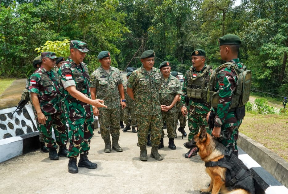 Dalam kunjungannya, Mayjen TNI Novi Rubadi Sugito dan Jeneral Dato’ Azhan meninjau langsung fasilitas serta kondisi kesiapan operasional pos yang menjadi simbol kerja sama pertahanan kedua negara tersebut.