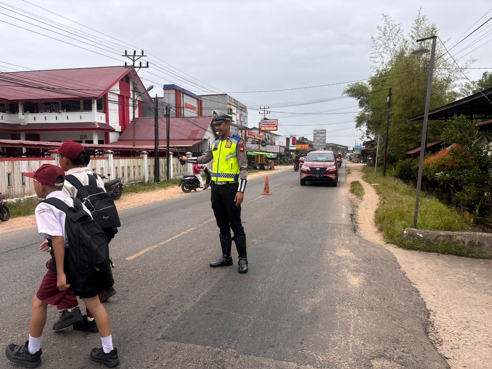 Ploting point pagi ini difokuskan pada pengaturan arus lalu lintas di jam-jam sibuk, khususnya saat masyarakat mulai beraktivitas menuju kantor dan sekolah. Kehadiran petugas di lapangan diharapkan mampu memberikan rasa aman dan nyaman bagi pengguna jalan.