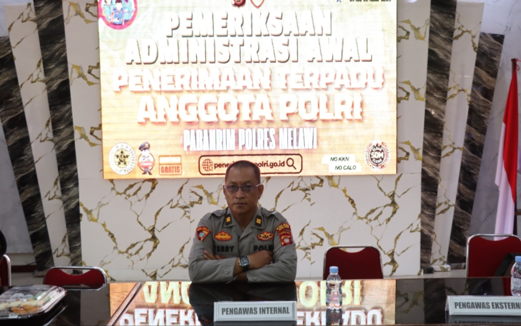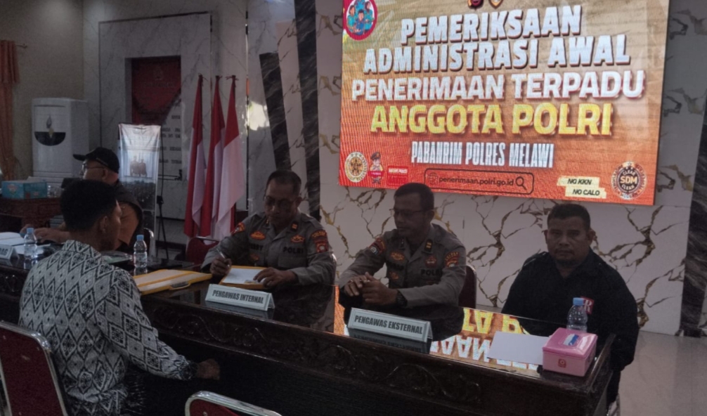 Melawi – Proses penerimaan terpadu anggota Polri tahun 2026 di Polres Melawi mendapat pengawasan ketat dari fungsi internal. Pada Senin, (6/4/2026), Seksi Profesi dan Pengamanan (Propam) Polres Melawi melaksanakan pemeriksaan dan pengawasan dalam tahapan pemeriksaan administrasi awal yang digelar di Aula Tribrata Polres Melawi.