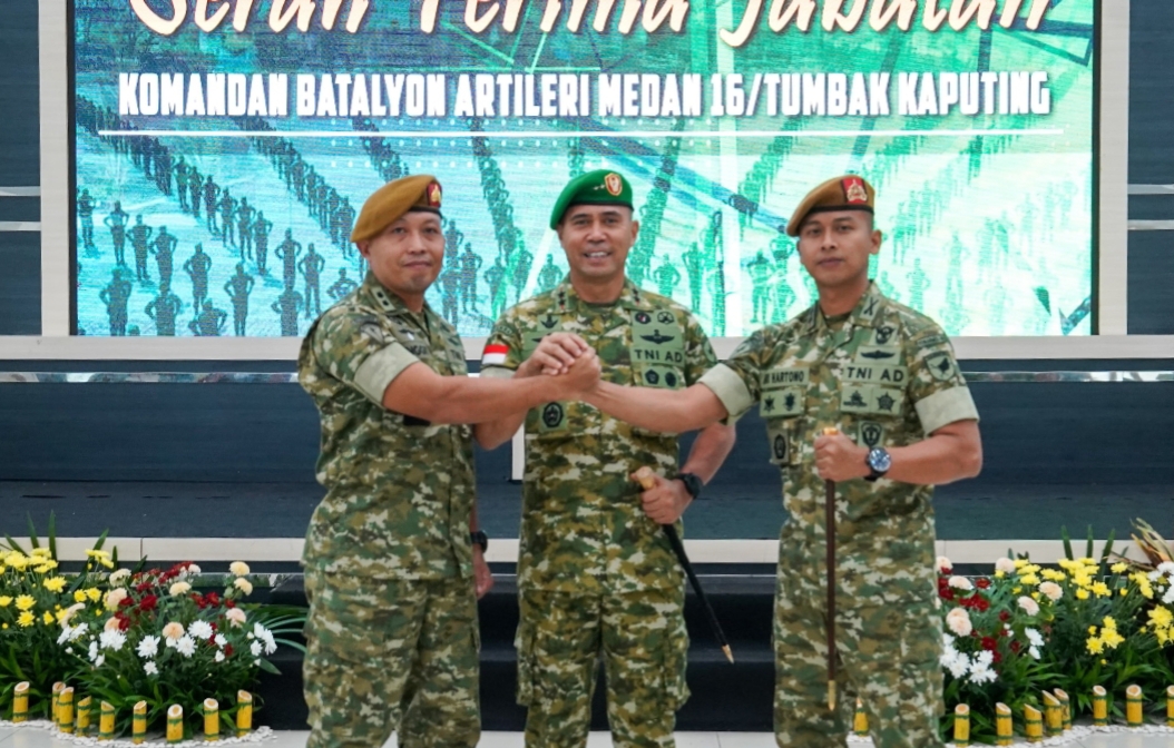 Kubu Raya – Panglima Kodam XII/Tanjungpura, Mayjen TNI Novi Rubadi Sugito, S.I.P., M.Si., memimpin Serah Terima Jabatan (Sertijab) Komandan Batalyon Artileri Medan (Danyonarmed) 16/Tumbak Kaputing. Prosesi sakral ini berlangsung di Aula Sudirman, Makodam XII/Tpr, pada Senin (6/4/2026).