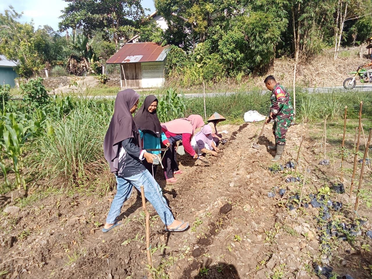 Kegiatan ini bertujuan untuk meningkatkan peran aktif masyarakat, khususnya kaum ibu, dalam memanfaatkan lahan pekarangan guna menunjang kebutuhan pangan keluarga. Dalam pelaksanaannya, Babinsa turut memberikan motivasi serta edukasi kepada anggota PKK tentang pentingnya kemandirian pangan melalui pemanfaatan lahan yang ada.