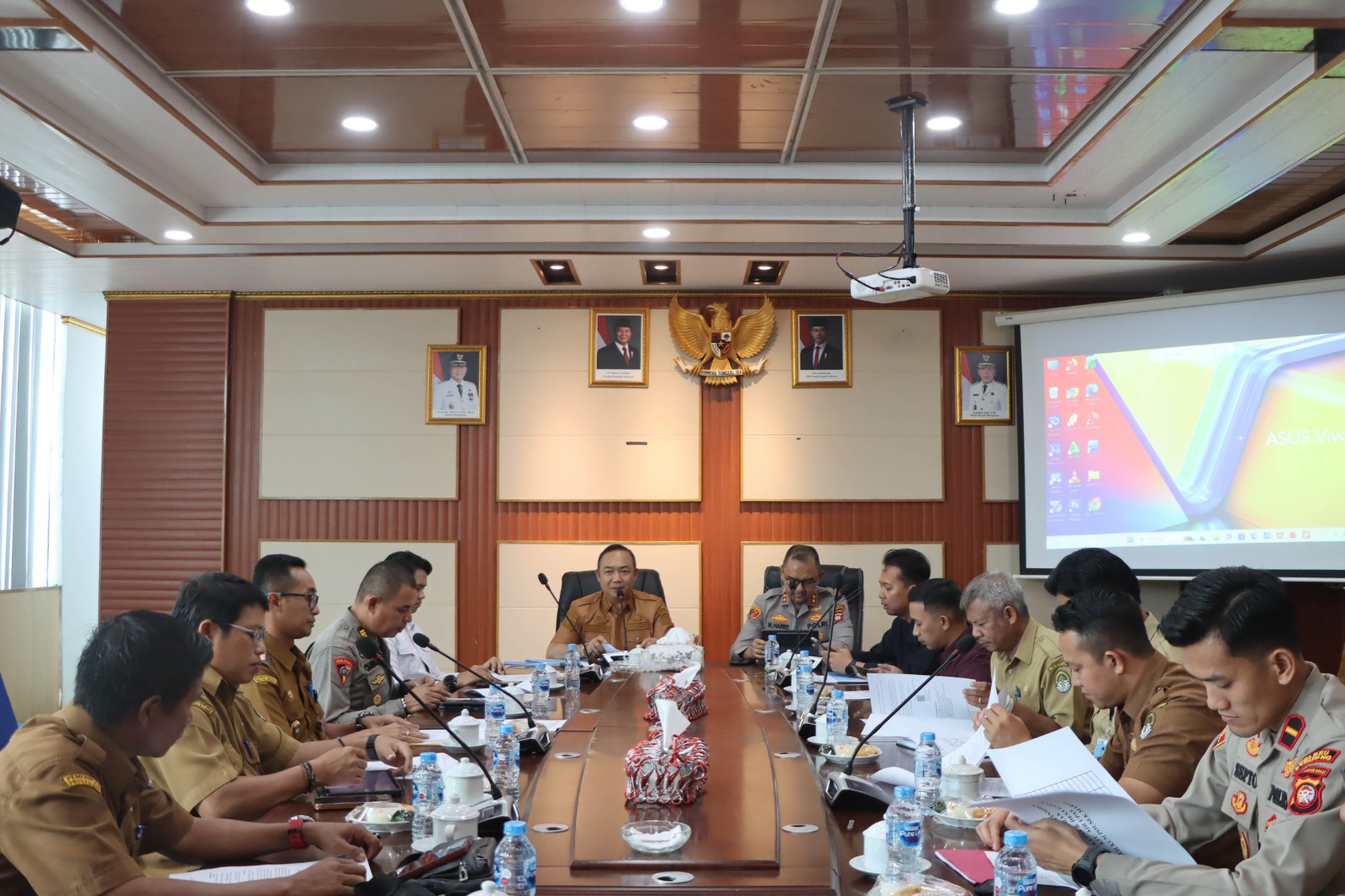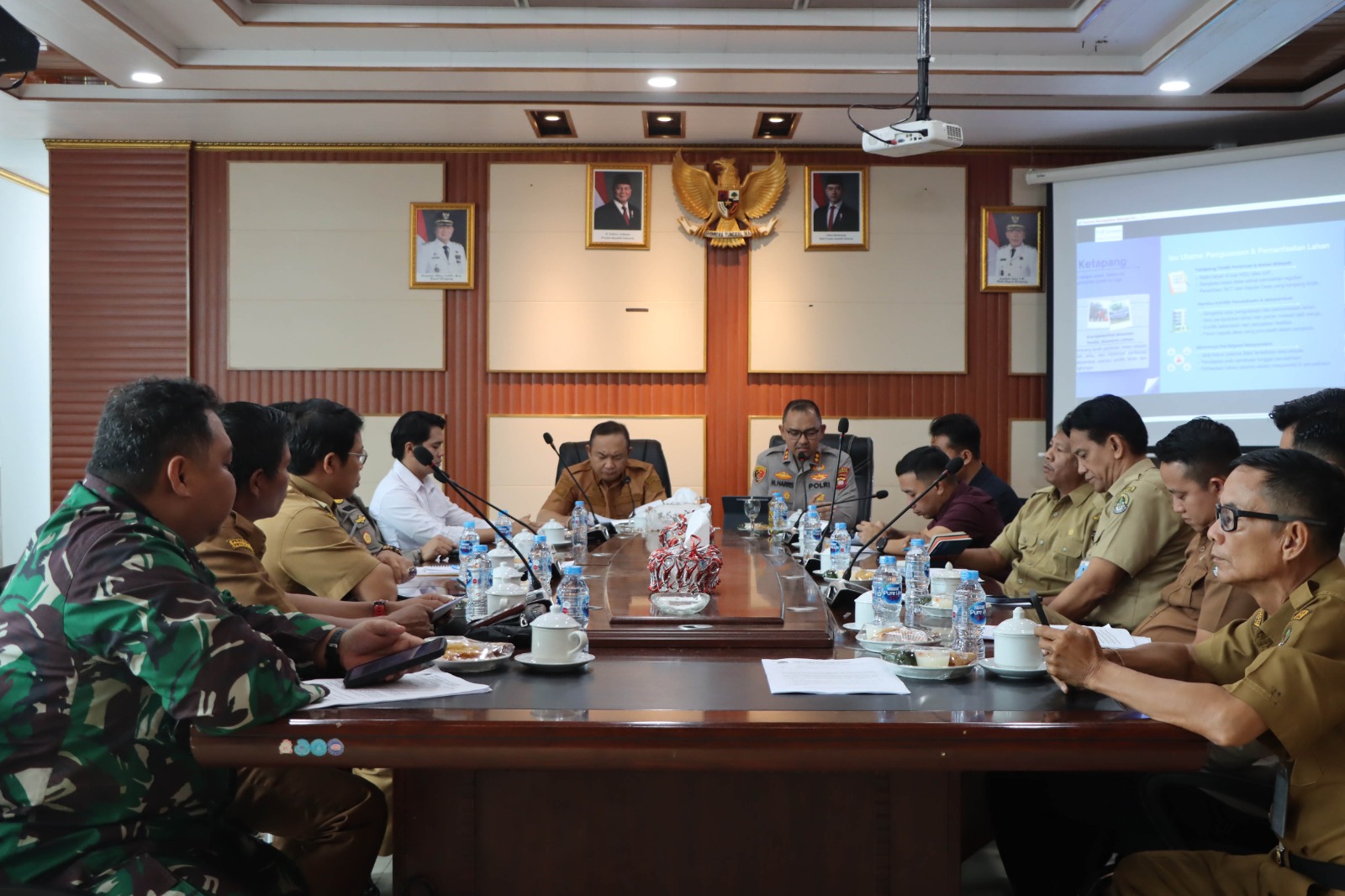 Ketapang– Kapolres Ketapang AKBP Muhammad Harris, S.H., S.I.K., M.I.K., CPHR bersama para Pejabat Utama (PJU) menghadiri kegiatan rapat koordinasi dalam rangka pembahasan kejadian pembakaran dan penembakan di Kecamatan Air Upas, Kabupaten Ketapang, Selasa (07/04/2026). Kegiatan tersebut dilaksanakan di Ruang Rapat Kantor Bupati Ketapang.