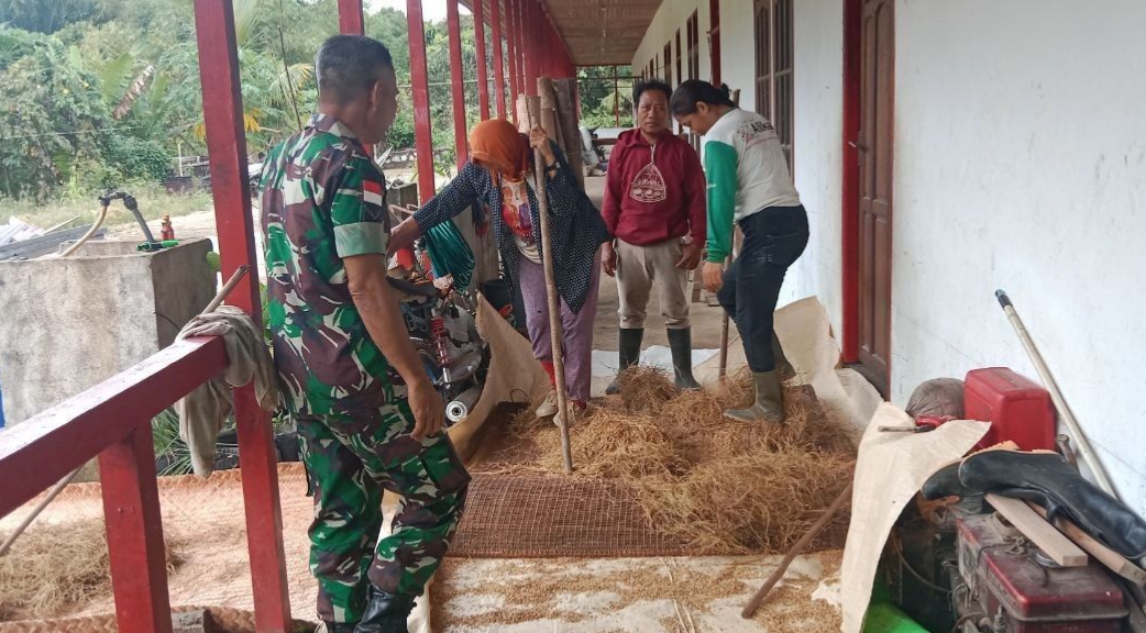 Kapuas Hulu – Dalam upaya membantu meringankan beban masyarakat di wilayah binaannya, Babinsa Koramil 1206-03/Batang Lupar melaksanakan kegiatan gotong royong bersama warga dengan merontokan benih padi secara manual, di salah satu desa Sungai Setulang Kecamatan Batang Lupar, Kamis (09/04/2026).