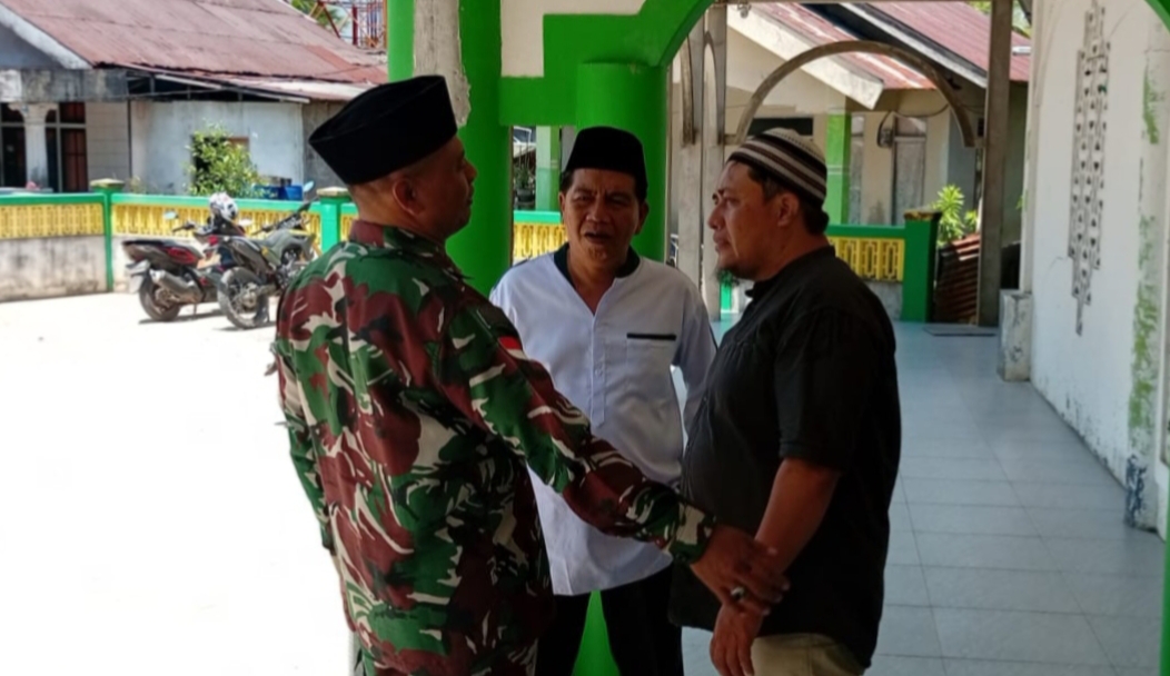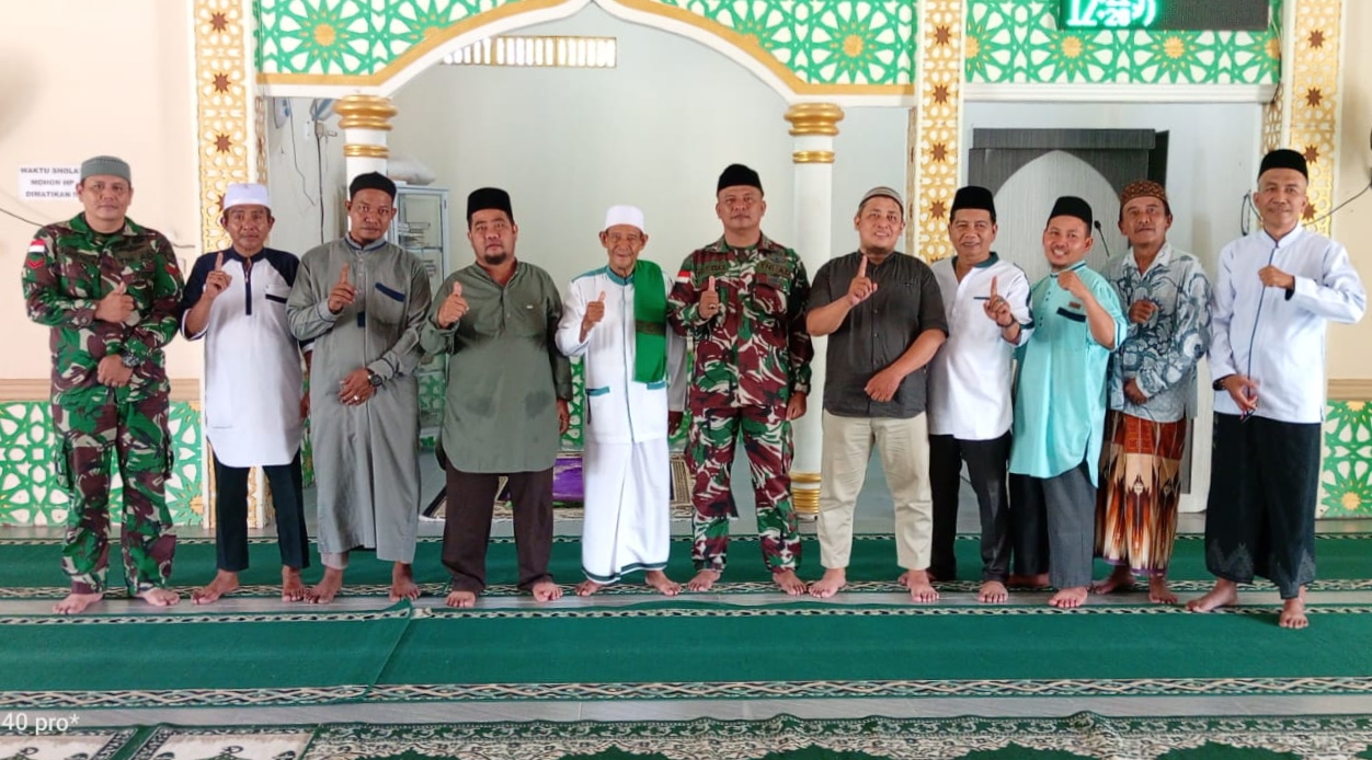 Kegiatan ini merupakan bagian dari pembinaan teritorial yang rutin dilakukan, sekaligus sebagai sarana menjalin silaturahmi dengan para tokoh agama dan masyarakat. Kehadiran Danramil beserta anggota disambut hangat oleh pengurus masjid dan jamaah yang turut melaksanakan ibadah Sholat Jumat secara berjamaah.