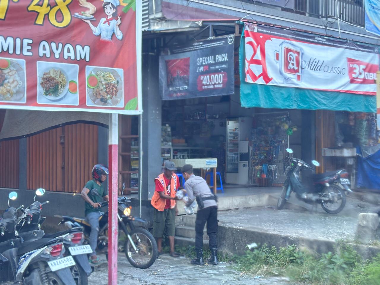 Selain itu, personel Polres Sintang turut membagikan makanan siap santap kepada warga di sejumlah titik. Kegiatan ini menyasar masyarakat yang membutuhkan dan dilakukan secara langsung oleh anggota di lapangan.