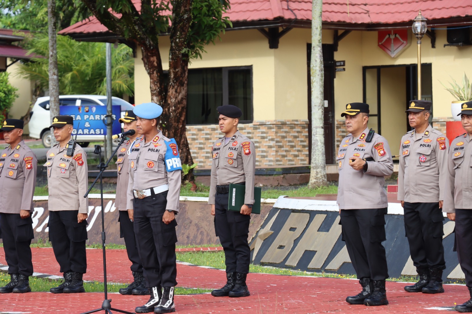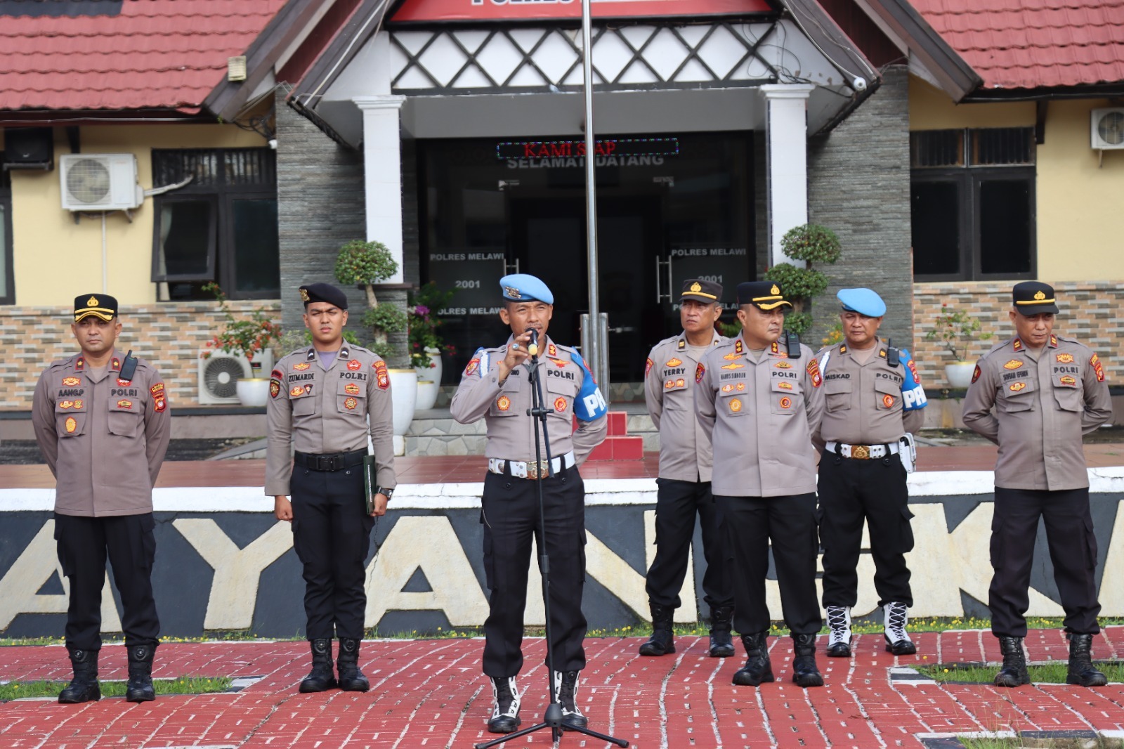 Selain itu, kegiatan ini juga dihadiri para Pejabat Utama (PJU), perwira, serta seluruh personel Polres Melawi yang mengikuti apel dengan tertib dan khidmat.