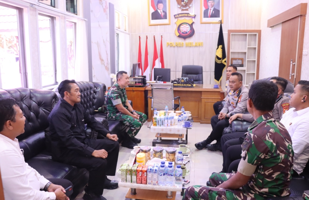 Melawi – Kapolres Melawi AKBP Harris Batara Simbolon, S.I.K., S.H., M.Tr.Opsla di dampingi Waka Polres Kompol Aang Permana, S.I.P., S.H., M.A.P dan pejabat utama menerima kunjungan kerja dan silaturahmi Dandim 1205/ Stg Letkol Arm Anggit Wijaksono, S.I.P., M.I.P., M.O.S di ruang kerja Kapolres Melawi, Senin (20/4/26).