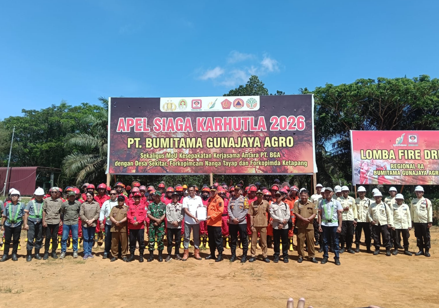 Ketapang- Dalam upaya meningkatkan kesiapsiagaan menghadapi potensi kebakaran hutan dan lahan (karhutla), Polsek Nanga Tayap Polres Ketapang bersama jajaran stakeholder serta PT Bumitama Gunajaya Agro (PT BGA) menggelar apel siaga di Dusun Tanah Merah, Desa Sungai Kelik, Kecamatan Nanga Tayap Kabupaten Ketapang, pada Senin (20/04/2026).