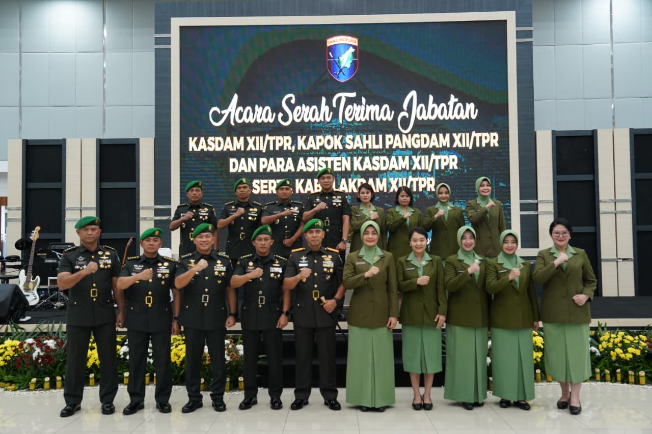 Selanjutnya, posisi Aspers Kasdam XII/Tpr kini dijabat oleh Kolonel Inf Arif Munawar, S.E., M.M., menggantikan Kolonel Inf Santoso, S.H., M.Han. Untuk posisi Aster Kasdam XII/Tpr, jabatan diserahkan dari Kolonel Inf Denny Noviandi kepada Kolonel Inf Leo Octavianus M. Sinaga, S.Sos., M.I.Pol.