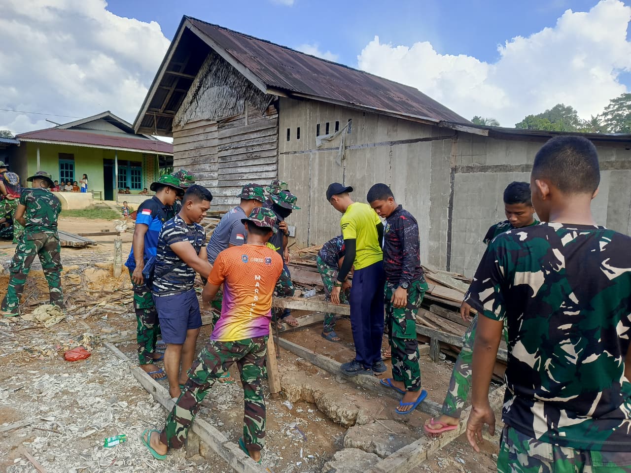 Kegiatan rehab rumah ini dilaksanakan sebagai bentuk kepedulian TNI terhadap kondisi masyarakat yang membutuhkan tempat tinggal layak huni. Anggota Satgas TMMD bersama warga setempat bahu-membahu melaksanakan pekerjaan secara gotong royong, mulai dari perbaikan struktur bangunan hingga penyelesaian akhir.