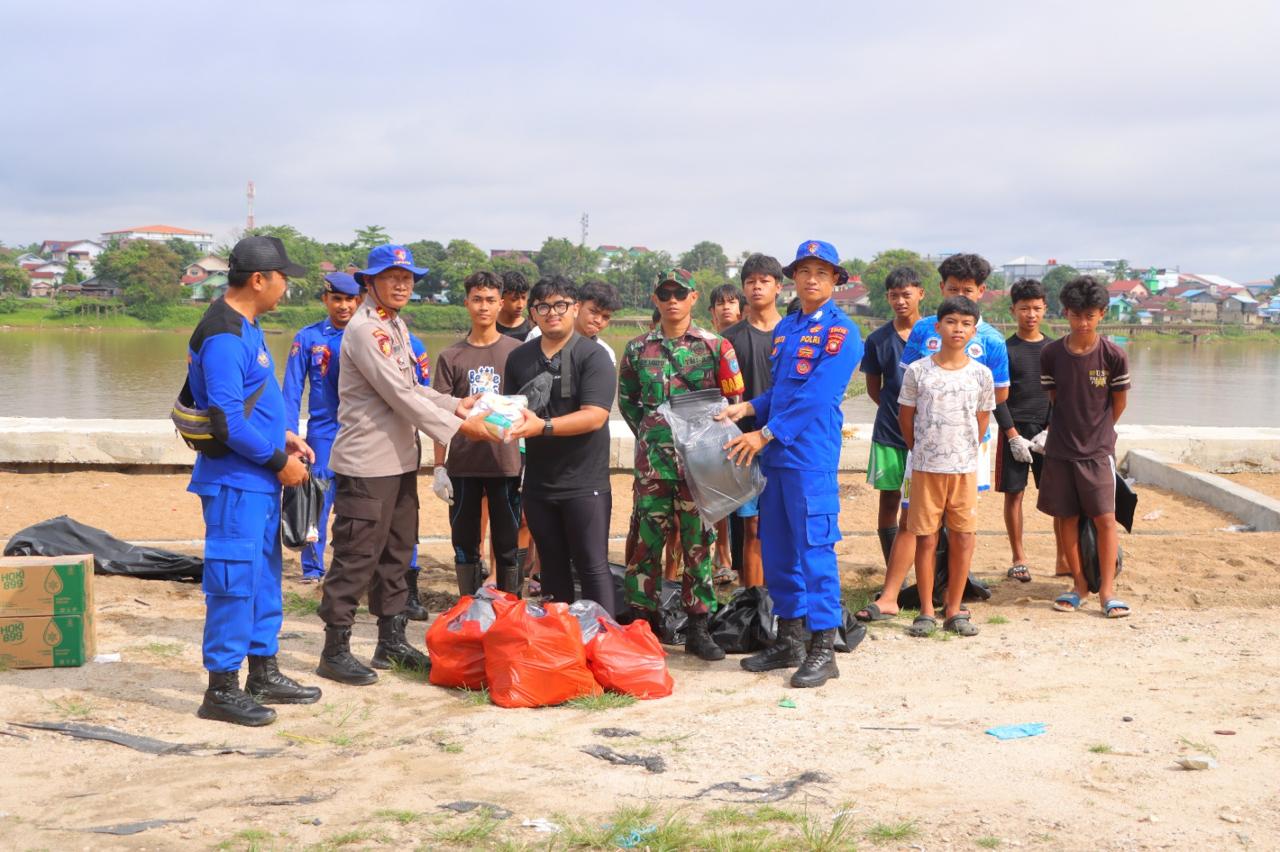 Melihat dedikasi tersebut, Polres Sintang hadir memberikan dukungan. Bantuan berupa alat pelindung diri (APD) dan perlengkapan operasional senilai Rp1.500.000 diserahkan sebagai bentuk apresiasi sekaligus dorongan agar gerakan ini terus berlanjut dan berkembang. Tak hanya itu, Satpolair Polres Sintang bersama BOWARA Grup juga turun langsung membersihkan area tepian Sungai Kampung Ladang, menunjukkan sinergi nyata antara aparat dan komunitas dalam menjaga lingkungan, Minggu (26/4).