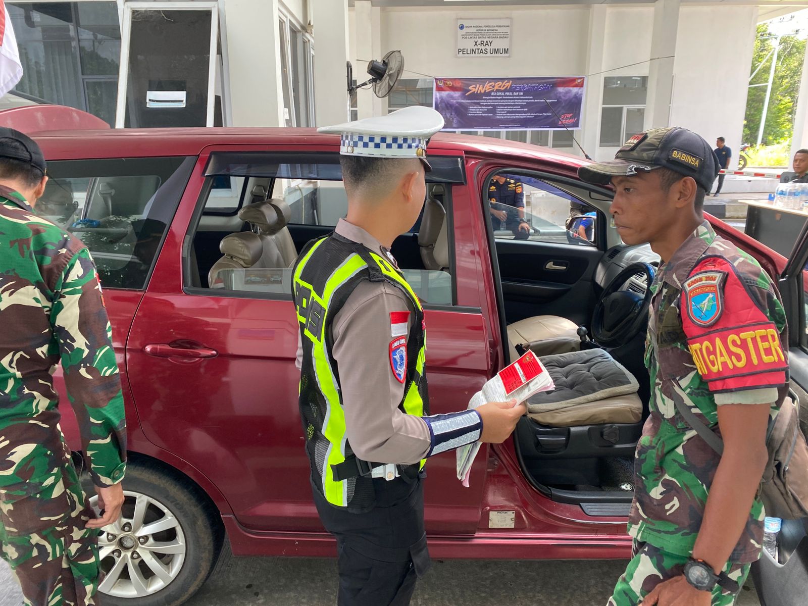 Danramil 04/Badau Kapten Inf Mahfud Sabban menyampaikan “Hari ini, Kami sebagai Tim Gabungan memperketat pemeriksaan kendaraan dan identitas pelintas guna meminimalisir praktik pengiriman barang maupun tenaga kerja secara ilegal” teranganya.