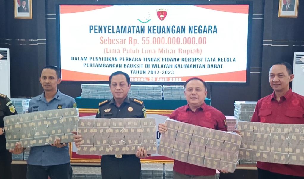 Pontianak- Bertempat di Aula Baharuddin Lopa lt. 4 Kejati Kalbar, Kejaksaan Tinggi Kalimantan Barat kembali meneguhkan posisinya sebagai garda terdepan dalam penegakan hukum yang tidak hanya represif, tetapi juga restitutif dengan mengelar Press Release Penyelamatan Keuangan Negara Dalam perkara dugaan tindak pidana korupsi pada Tata Kelola Pertambangan Bauksit di Wilayah Kalimantan Barat Tahun 2017 sampai dengan 2023, sebesar kurang lebih Rp.55 Miliar. Rabu 29/04/2026.